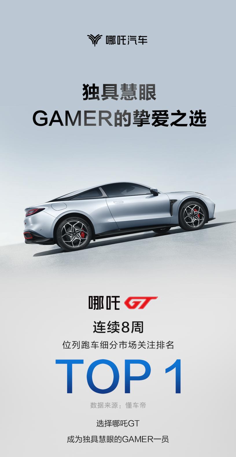 哪吒GT连续8周位列跑车细分市场关注排名TOP1
