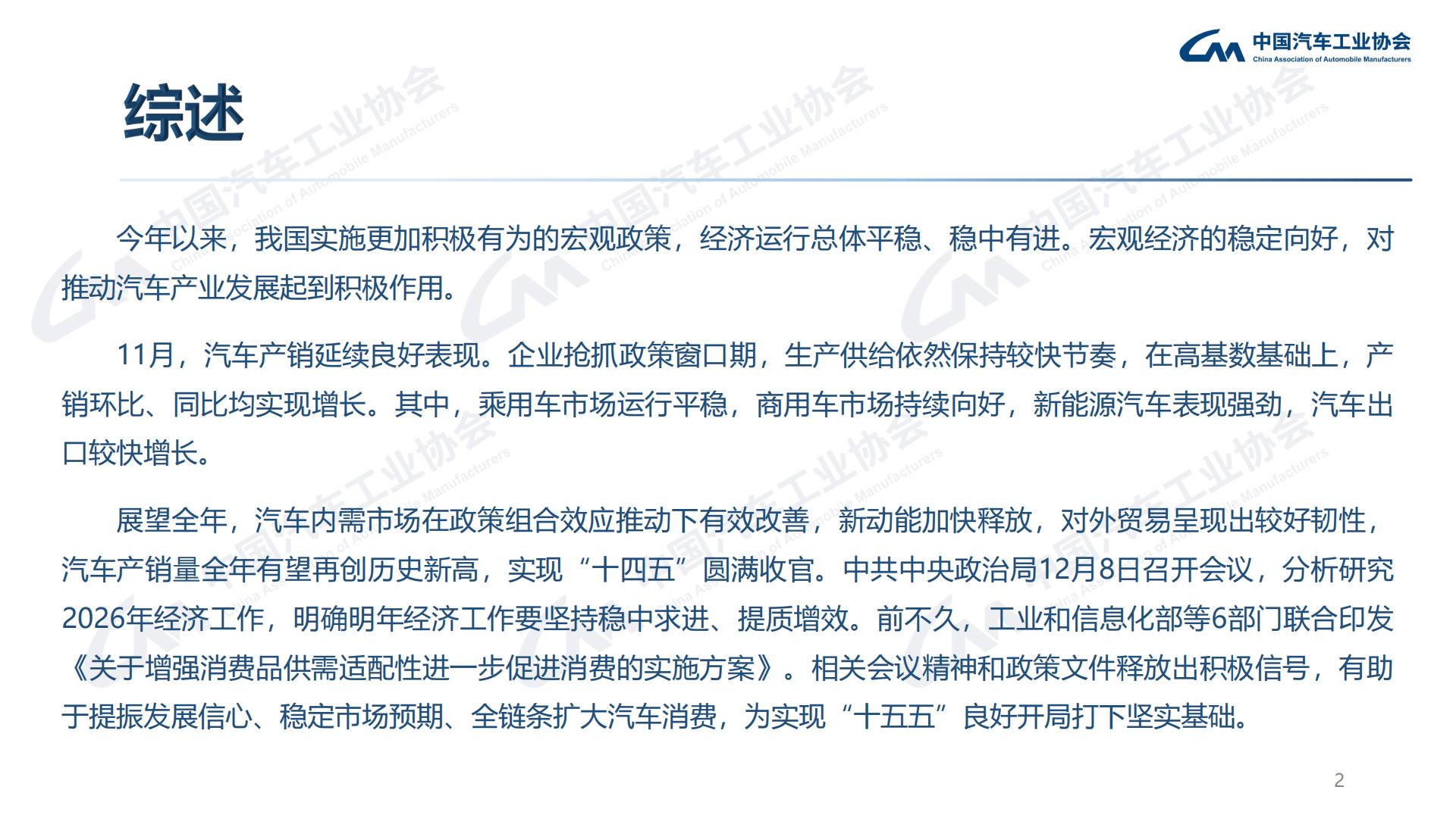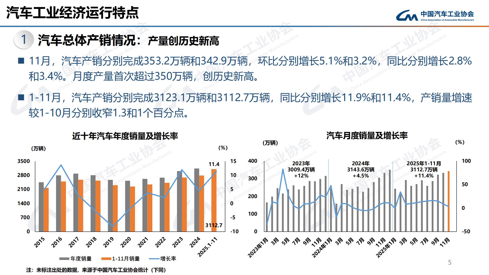中汽协:11月汽车产销环比、同比均实现增长,新能源表现强劲