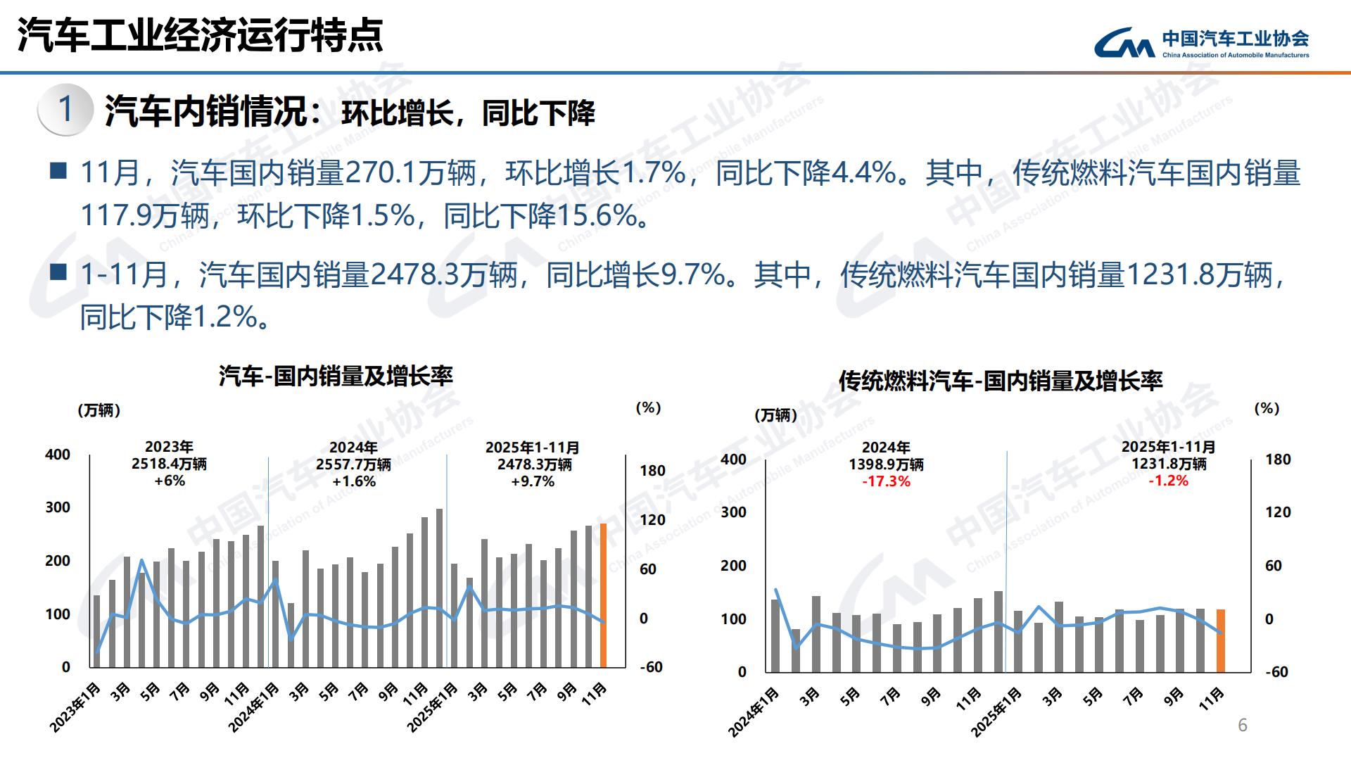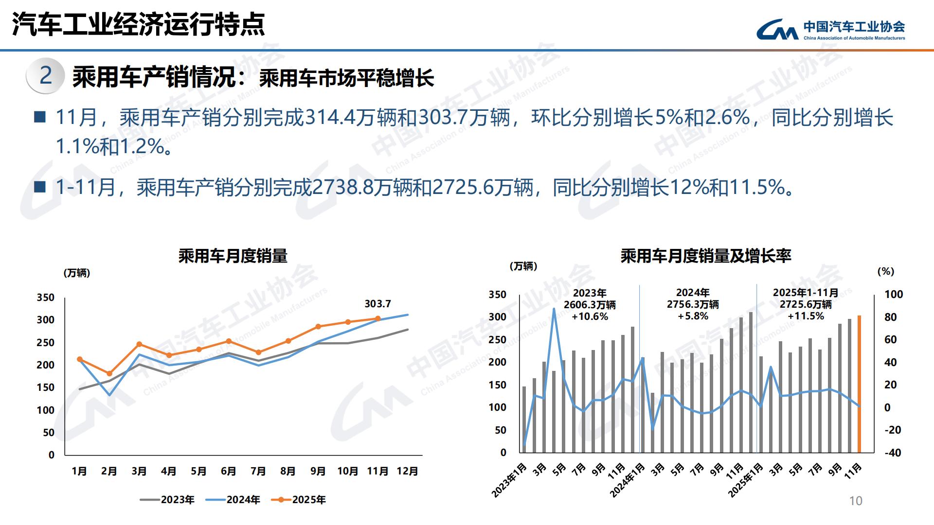 中汽协:11月乘用车市场运行平稳,销量环比同比在高基数基础上均实现增长