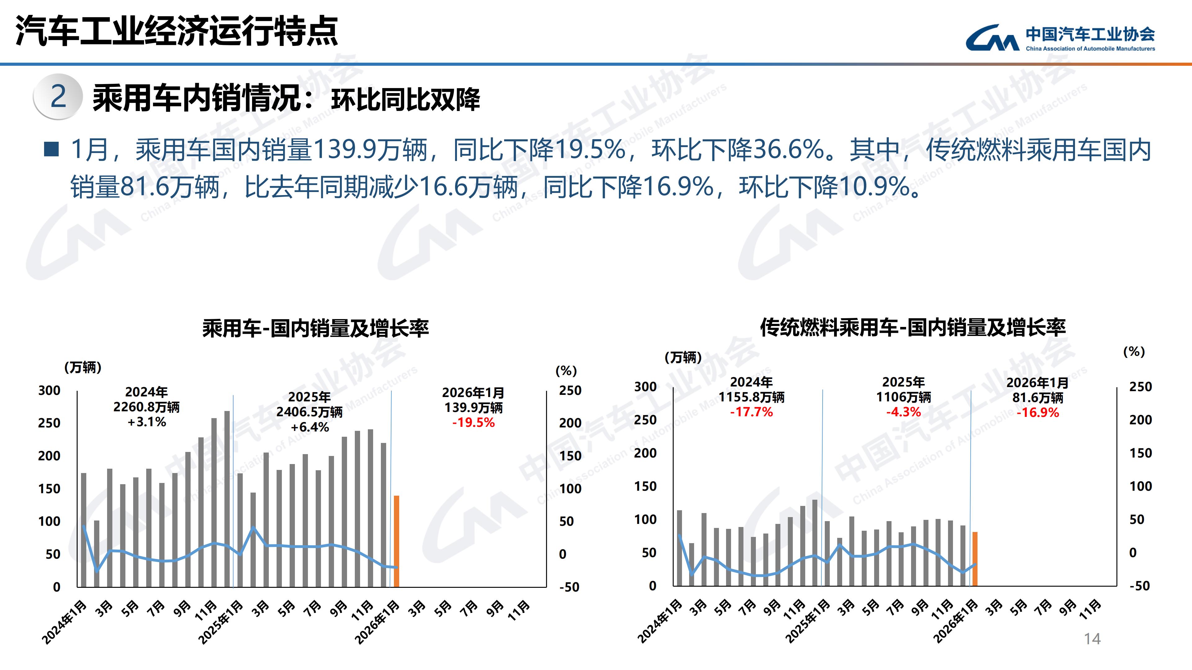 中汽协:1月乘用车市场环比、同比均呈下降