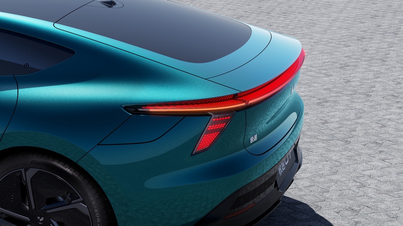极越07延续了“机器人美学”设计语言的家族化基因——机器人化、未来主义、共情,追求科技、纯净、简洁。在极越07身上,既沉淀了汽车设计历史中的经典元素,又完美结合AI科技,消除传统车外门把手、车顶激光雷达等繁复的组件,采用溜背式设计,以黄金比例定律营造丰盈线条,塑造出科技简约又富有动感的汽车机器人外观。
