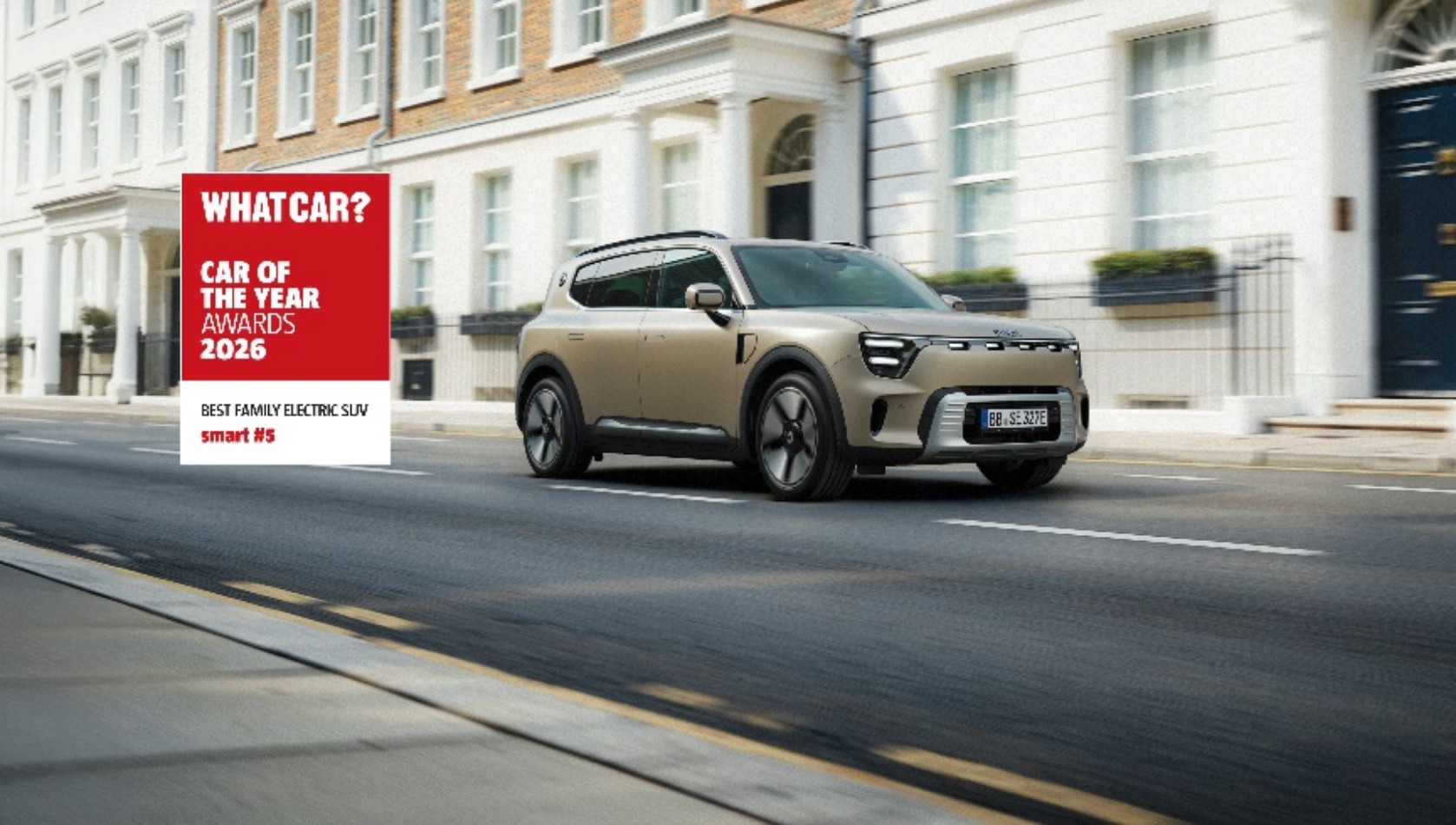 在英国伦敦举办的《What Car?》奖项评审中,smart #5 获颁“2026年度家庭电动SUV”大奖。