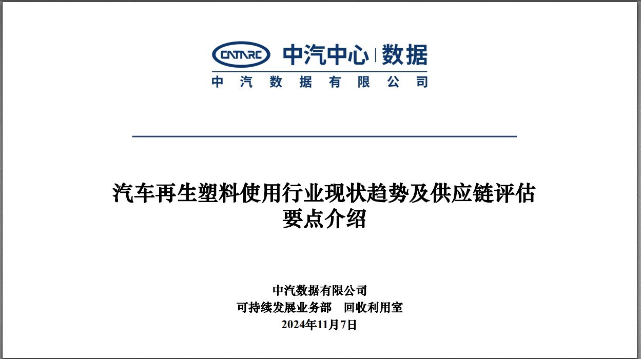 近日,TÜV南德意志集团(以下简称"TÜV南德")与中汽数据有限公司联合举办了一场以"汽车及零部件产品循环再生含量核查技术规范及认证规则宣贯"为主题的线上专题会议。此次会议汇聚了来自整车企业、零部件企业、材料企业的50余名行业专家与代表,共同探讨了汽车再生塑料使用的行业现状、趋势以及供应链评估的关键要点。