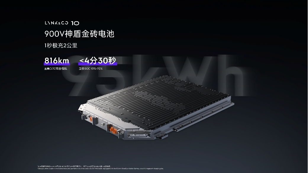 在三电硬实力上,领克10搭载900V高压架构,大规模应用航天级镁合金技术实现极致轻量化,最快可实现“1秒极充2公里”,4分22秒即可完成10%-70%极速补能,成为全球量产充电速度最快电车。不仅如此,在电池安全方面,神盾金砖电池更是完成了行业首次超国标12倍1800焦电池底部极限撞击测试,刷新新能源电池安全的新纪录。