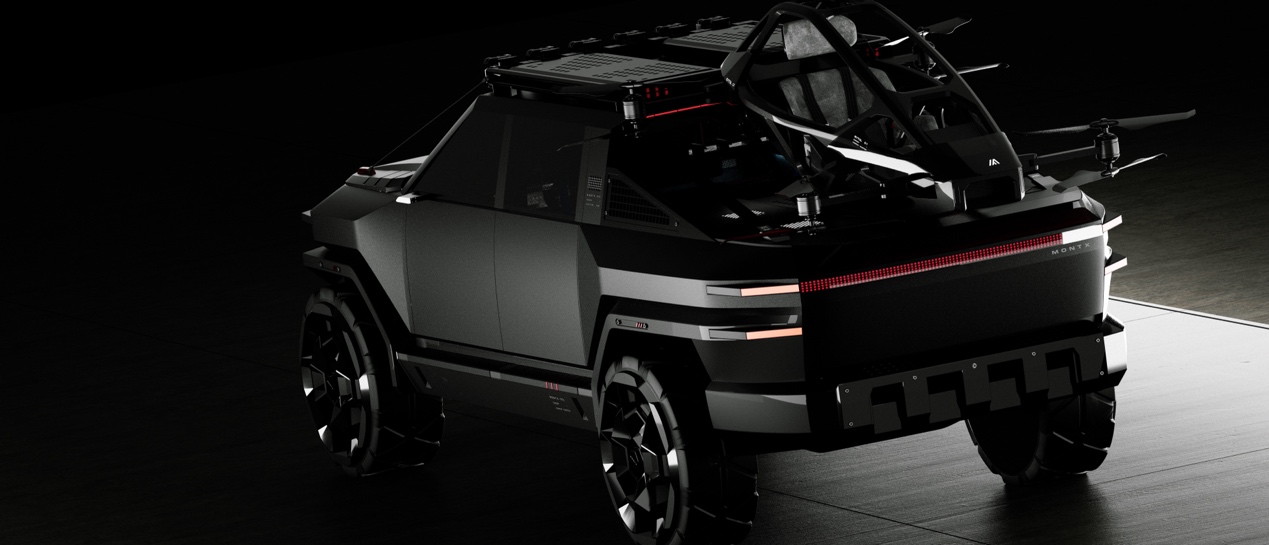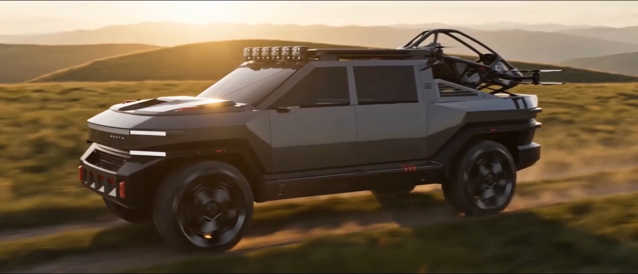依托四轮分布式驱动电机与底盘扭矩矢量控制,MONTX P10无惧泥泞、沙石、雪地等恶劣路况。更具备突破维度的“地空双栖”能力——车斗搭载的飞行器可自动升空,实现“车机协同”,将二维地面的尽头转化为三维天空的起点,让“去不了的地方”成为“可抵达的远方”。