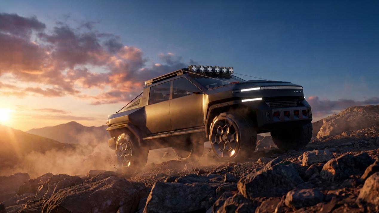 针对探索者对极致性能与立体出行的渴望,MONTX P10将皮卡从单一的装载工具升维为支持立体出行的未来装备。