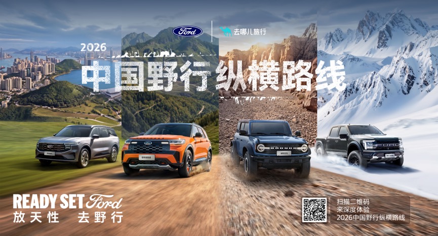为了让更多的用户能轻松体验到品牌所倡导的“放天性,去野行”理念,福特携手去哪儿旅行网,针对4-10月黄金出行期重磅推出了“2026中国野行纵横路线”。四条定制路线体验,精准对应“四级野”产品场景——无论是在F-150猛禽的带领下穿越可可西里无人区,做荒野的守护者;还是借助福特烈马/游骑侠卓越的性能挑战库布齐沙漠的沙丘,打卡乌兰哈达火山;亦或者是凭借福特探险者/福特智趣烈马舒适又不失强悍的综合性能的穿越南疆,在喀班巴依峰脚下床车露营;也可以带上全家,和福特锐界L/领裕一起体验“中国最美峡谷公路”怒江大峡谷沿途奇景。福特再一次把车辆性能与在地文化完美融合,真正做到“车在景中等,你只管来玩”。