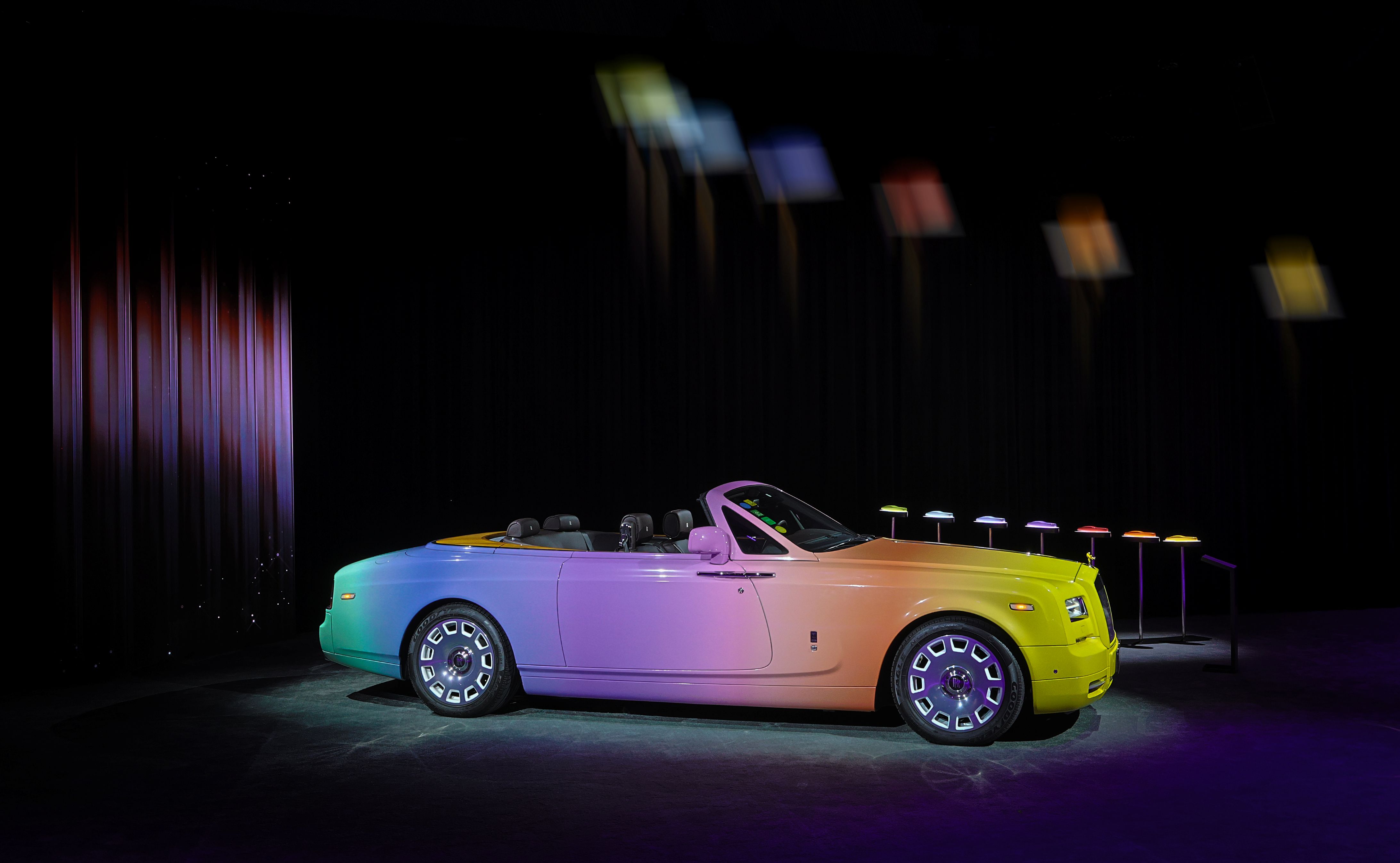 在过去的百年之中,幻影不仅见证了流行音乐、文化风潮的发展演变,还凭借在诠释车主独特个性和非凡成就方面无出其右的能力,成为这些卓越之士自我表达的完美画布,也令诸多名人座驾本身成为传奇。现场展陈的幻影V经典车型令观众回望1960年代前后的时代风姿,更通过艺术装置的展示,呼应“猫王”埃尔维斯·普雷斯利(Elvis Presley)座驾上独一无二的麦克风定制需求,以及约翰·列侬(John Lennon)采用手工绘制彩色漩涡、花卉及星座图案,极具个性色彩的幻影V涂装。