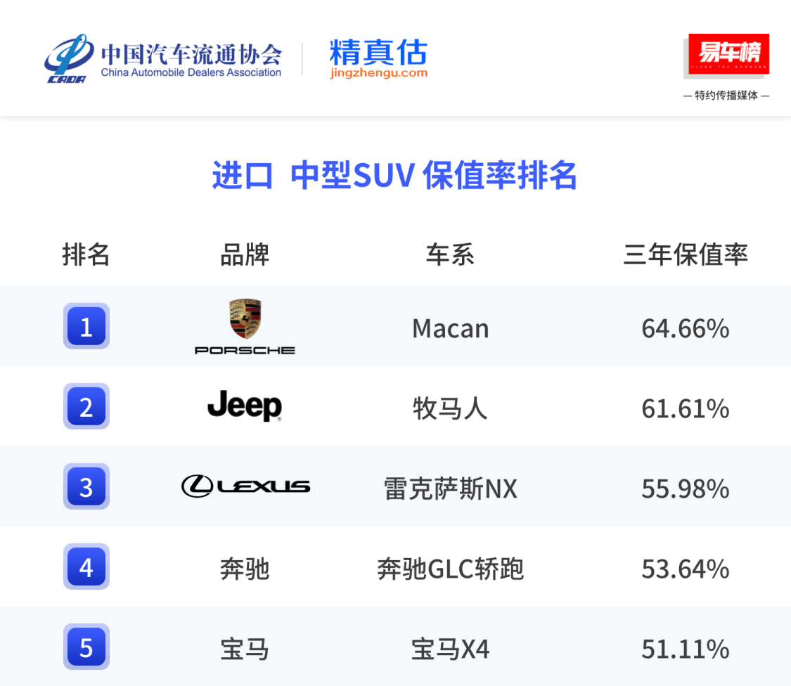 在细分车型领域,保时捷旗下多款车型延续亮眼表现。Macan蝉联进口中型SUV三年保值率冠军,保值率达64.66%;Cayenne E-Hybrid更是以高达82.82%的首年保值率,蝉联插电混动中大型SUV榜首。这些数据充分体现出保时捷在不同细分市场中稳定的保值表现和长期市场认可度。
