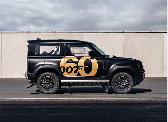 特别涂装版路虎卫士90采用邦德标志的黑金配色,其暗影般的深色车顶及侧身上装饰有007系列电影60周年的特殊纪念花纹。