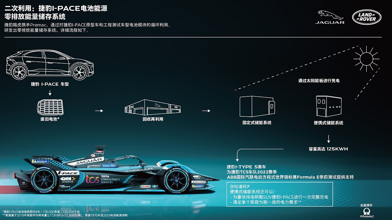 与此同时,围绕针对电气化车辆电池打造可持续商业模式的目标。今年初,捷豹路虎携手全球能源领域的领先者Pramac,共同推出一款具有便携和零排放特性的能量储存系统,当电气化车型电池状态无法继续满足电动汽车的严苛要求,也仍然可以在较低能耗情况下安全运作,发挥其“二次生命周期”价值。这项系统曾在捷豹TCS车队的季前测试中大显身手,不仅为车队的尖端赛车赛道性能分析系统提供电力,同时还作为捷豹车队维修站的辅助能源。通过发挥整个生态系统的资源整合优势和协同效应,进一步推动清洁能源的可行解决方案。