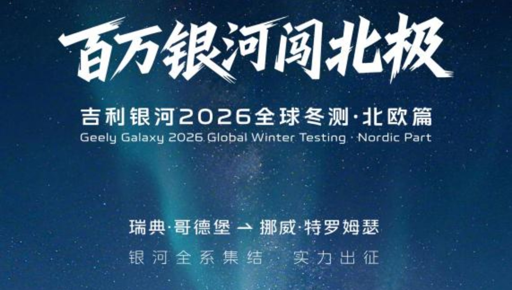 据悉,吉利银河官方公布,吉利银河品牌将于2026年1月下旬-2月中旬于北欧开展2026全球冬测。