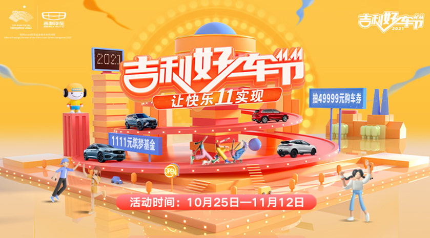 随着11月脚步临近,一年一度的双十一“购物狂欢节”已悄然拉开序幕,各大品牌及电商平台均已战火燃起,蓄势待发。为了感恩回馈千万用户,吉利汽车近日宣布自10月25日至11月12日将开启连续19天的“双11吉利好车节”,围绕“让快乐11实现”主题,联合全国三百多个城市、千余家经销商,通过双线多平台联动,大力推出“1111元现金红包、11111元筑梦大礼包”等超多惊喜福利,为用户打造一场好看、好玩、有“豪礼”的购车快乐狂欢盛典。