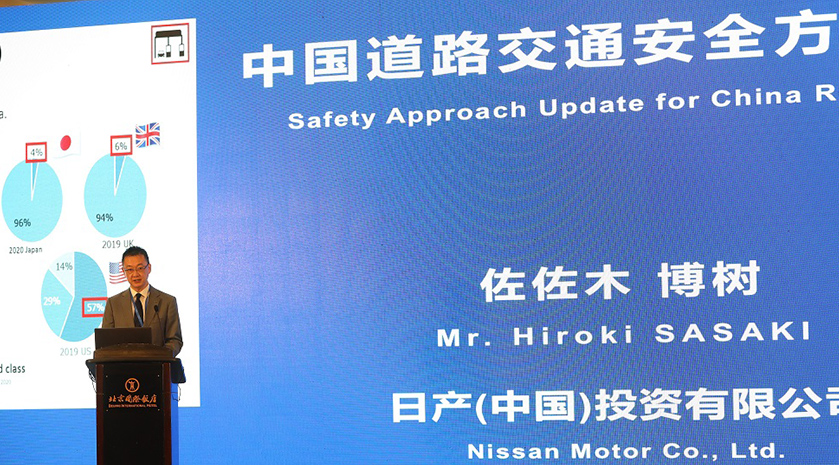 10月12日,由中国汽车技术研究中心有限公司主办,日产(中国)投资有限公司协办的第十五届中国道路交通安全论坛在北京成功召开。来自国家应急管理部、公安部、工信部、交通运输部等部委,以及国内外相关研究机构和高等院校的260多位嘉宾应邀出席。日产(中国)投资有限公司副总经理佐佐木博樹(Hiroki Sasaki)先生出席此次论坛,并发表题为“中国道路交通安全方法更新”的主旨演讲。