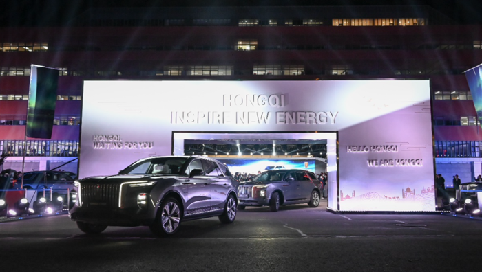9月29日,红旗战略车型——纯电动智能SUV E-HS9出口欧洲发车仪式在中国一汽总部举行。