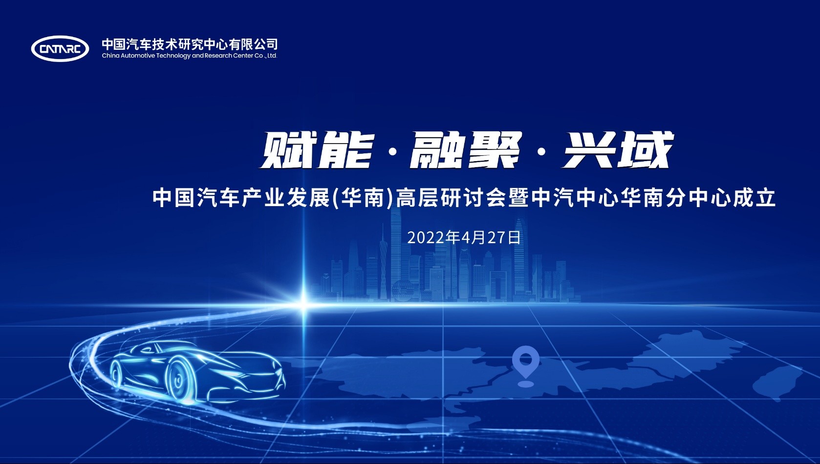 4月27日13:30—15:00召开中国汽车产业发展(华南)高层研讨会暨中汽中心华南分中心成立。本次会议采用线上形式召开,诚挚邀请您的观看。