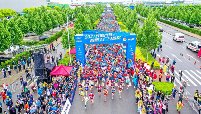 5月16日上午8时整,2021长城汽车智慧工厂马拉松在保定市大王店科技产业园区鸣枪开跑。
