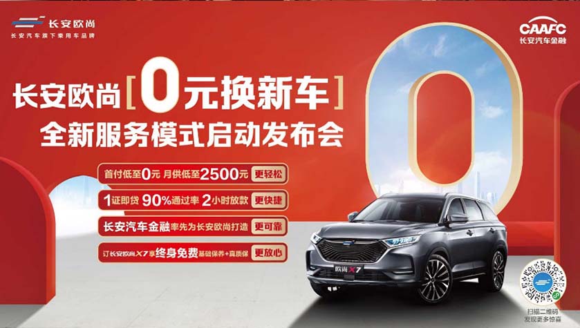 长安欧尚践行“客户主导”品牌理念,继推出行业首创终身双保双免服务后,长安欧尚汽车针对增换购客户0元换新车需求,再次行业首创不限品牌、不限车型、不限残值的“0元换新车”全新服务模式,打造“旧车处理+置换申报+金融服务+新车上牌+终身双保双免”一条龙服务。