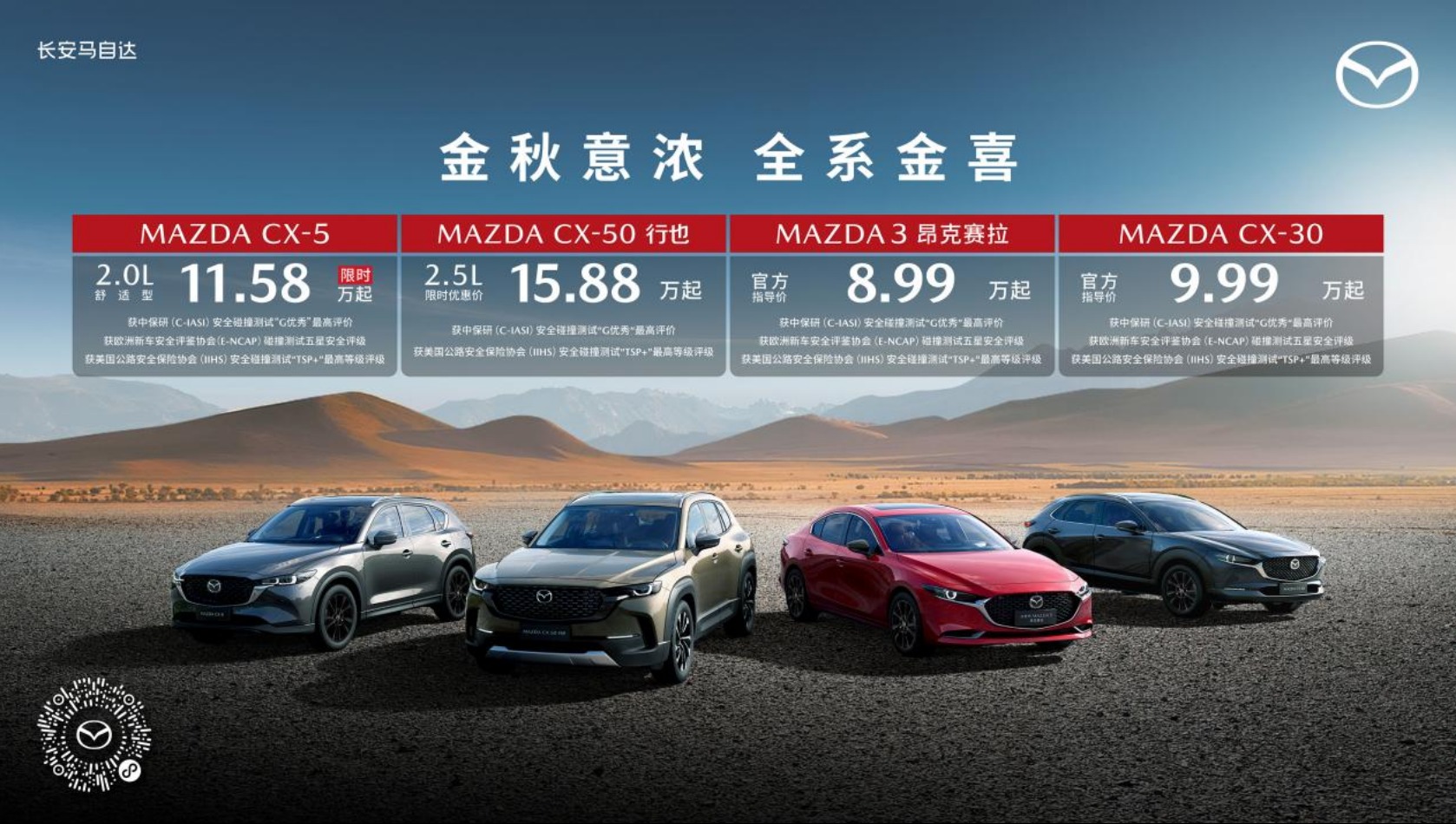 秋意渐浓,长安马自达9月购车全系送“金”喜:新能源中型SUV弯道王MAZDA EZ-60全面到店,实车试驾开启。