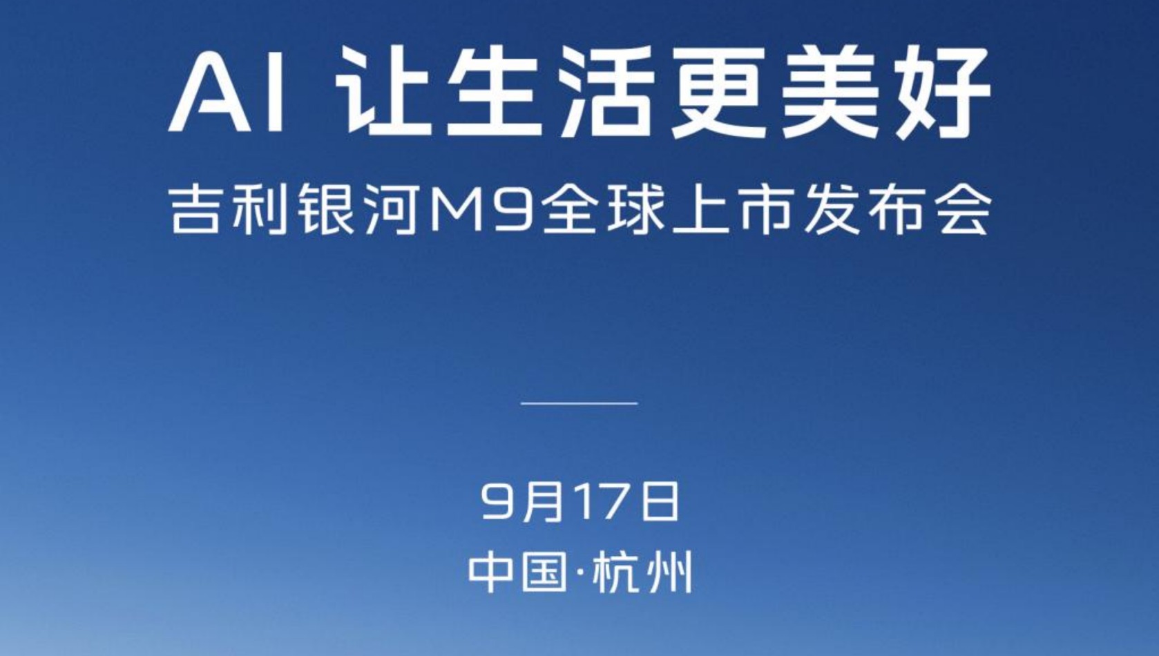 近日,吉利银河正式官宣,旗下全新“AI科技大六座旗舰SUV”——吉利银河M9,将于9月17日在“AI之城”杭州正式全球上市,携手用户共启美好生活新程。
