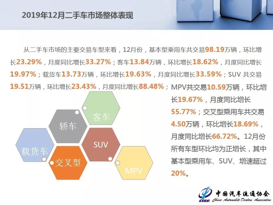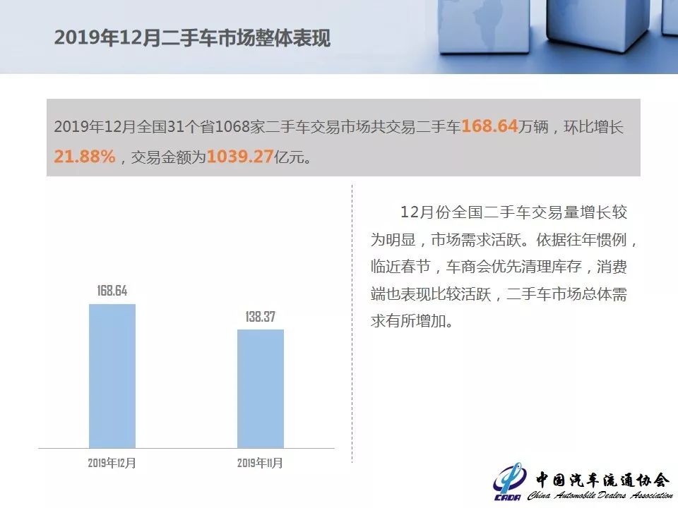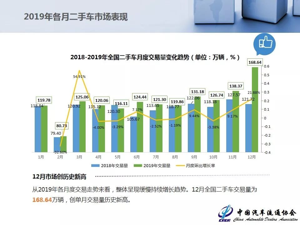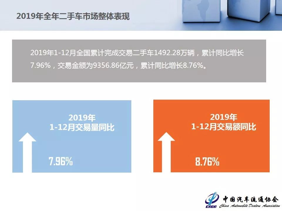 据中国汽车流通协会统计,2019年1-12月全国累计完成交易二手车1492.28万辆,累计同比增长7.96%,交易金额为9356.86亿元,累计同比增长8.76。