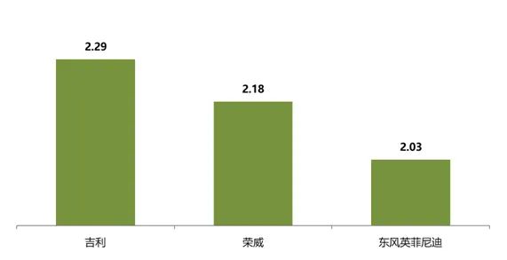 5月,库存深度超过2个月的品牌有5个,分别为:吉利、荣威、东风英菲尼迪、广汽菲克、广汽传祺。其中库存深度最高的3个为:吉利、荣威、东风英菲尼迪。