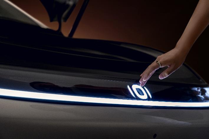 更为重要的是,这也是一款将触控交互技术融入车灯系统,并与品牌LOGO完美融合的创新产品,真正让灯光不仅“可视”而且“可交互”。 用户只需双击前脸LOGO区域,LOGO灯会动态点亮提供视觉反馈,同时自动开启前备箱。双重反馈机制,为用户带来直观而便利的交互体验。