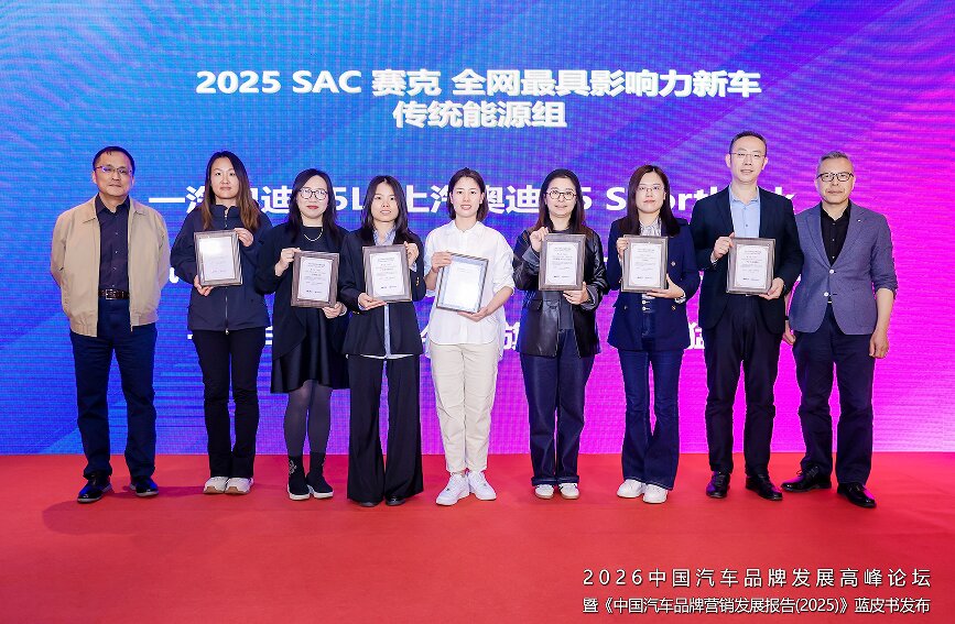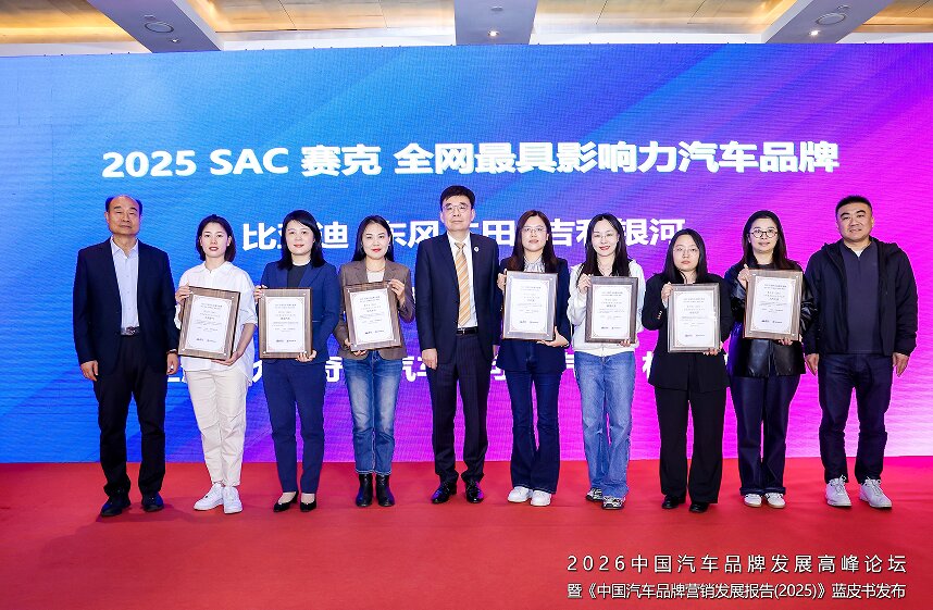 【中国汽车趋势网讯】3月25日,由车问网、四度传播研究院(SAC)共同主办的“2026年中国汽车品牌发展高峰论坛”在北京隆重举行,大会重磅发布了《中国汽车品牌营销发展报告(2025)》蓝皮书,并公布“SAC赛克奖”?评选结果,同时也为入选蓝皮书作者、优秀营销传播案例企业及2025 SAC赛克奖获奖企业代表颁奖。