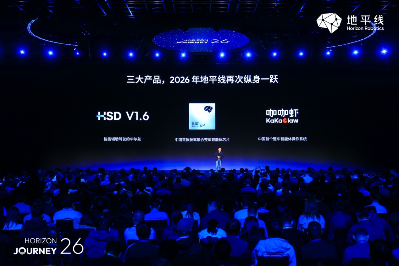 【中国汽车趋势网讯】4月22日,以“征程无垠,驭见星空”为主题的地平线年度产品技术发布会在京举行。会上,地平线正式发布中国首款舱驾融合整车智能体芯片地平线星空®(Horizon Starry®),以及中国首个整车智能体操作系统地平线KaKaClaw咖咖虾?,并同步推出全场景辅助驾驶系统HSD V1.6。