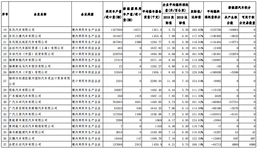 附件:2019年度中国乘用车企业平均燃料消耗量与新能源汽车积分核算情况表