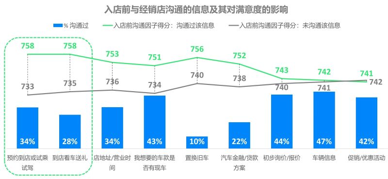 入店前与经销店沟通预约到店或试乘试驾和到店看车送礼信息的消费者满意度更高