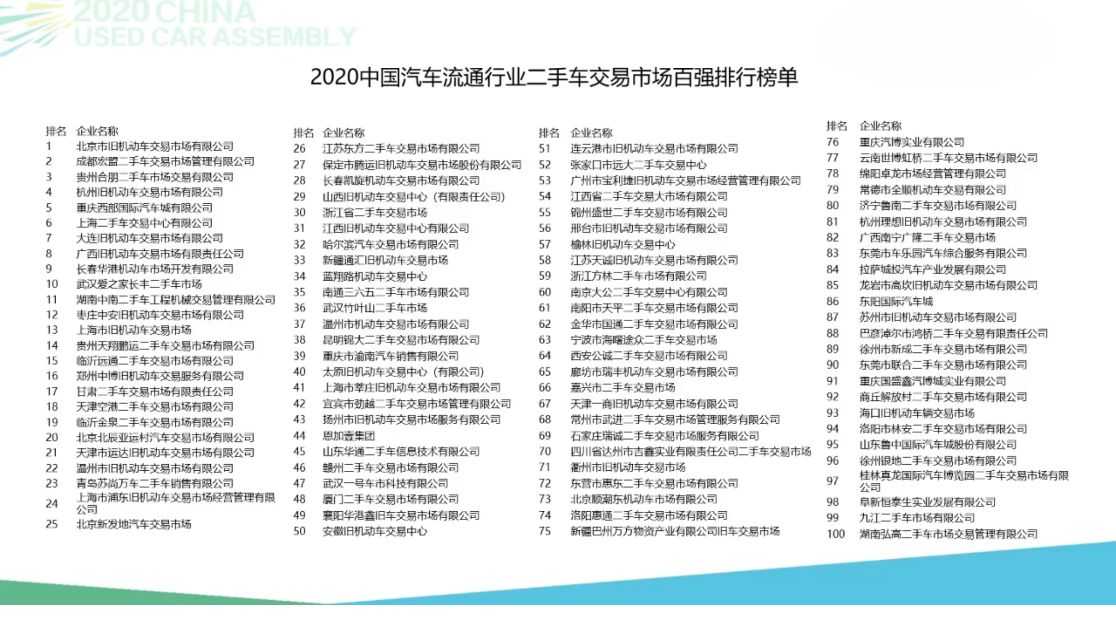 此次线上会议在发布交易市场百强排行榜后顺利结束。虽然新冠疫情给二手车行业和企业经营带来的冲击效应依然在蔓延,但新政策、新需求、新技术、新营销也给二手车经销者创造了历史性的发展机遇。在中国汽车流通协会与广大二手车经销商的共同努力下,相信我国的二手车行业必定迎来新的辉煌!