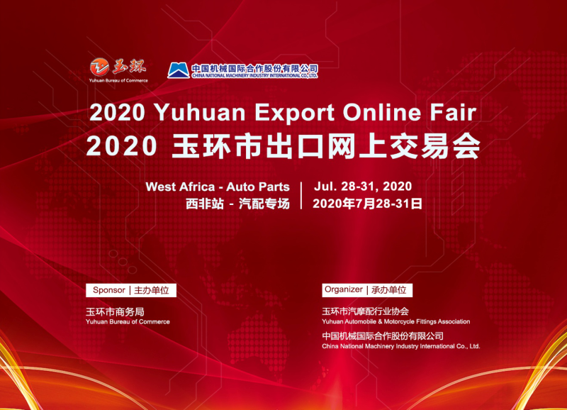 2020年玉环市出口网上交易会(西非站-汽配专场)由玉环市商务局主办;玉环市汽摩配行业协会和中国机械国际合作股份有限公司承办;尼日利亚MD Perspective公司及浙江联亚国际展览有限公司协办。