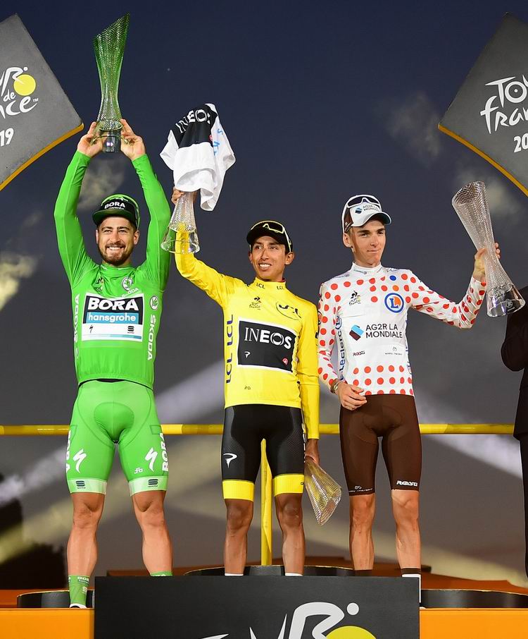 22岁的哥伦比亚选手埃甘·贝尔纳尔(Egan Bernal)7月29日在巴黎香榭丽舍大道赢得其首个环法自行车赛冠军,并获得由斯柯达汽车设计的奖杯。第106届环法自行车赛跨越比利时与法国,赛程总长超3,460公里。在颁奖仪式上,斯柯达汽车市场销售董事方奕安(Alain Favey)为“绿衫”获得者、最佳冲刺选手彼得·萨甘(Peter Sagan)颁发了同样由斯柯达汽车设计的绿色水晶玻璃奖杯。