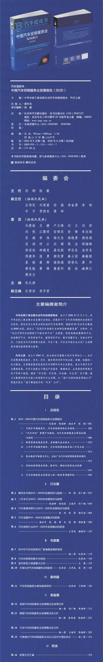 “蓝皮书”系列是中国社会科学文献出版社国家重点出版规划项目,是具有强大社会传播效果和行业影响力的系列、正规出版物,对编纂者的资质有严格考核。近10年来,汽车产业供给侧的蓝皮书已达20本之多,但针对经销服务领域的皮书却常年缺位。