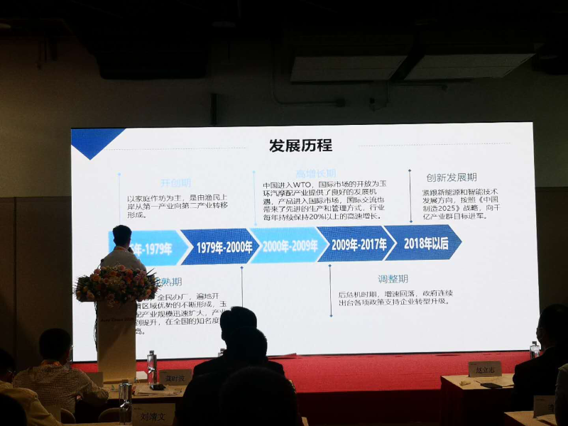 玉环商务局龚时波局长介绍了玉环汽车产业情况,玉环市汽车零部件企业数量已经达到了2300多家,产品远销全球150多个国家和地区,被誉为“中国汽车零部件产业基地”。2018年,玉环市汽车摩托车配件行业实现产值564.16亿元,占玉环市工业经济总量的34.56%。多年来,玉环市围绕打造“工业强市”目标,形成了汽摩配、阀门水暖、家具、眼镜配件、药械包装、机床等六大特色产业集群。拥有中国阀门之都、中国汽车零部件产业基地、中国新古典家具精品生产(采购)基地、中国欧式古典家具生产基地等10大国字号区域品牌。随着浙江省乐清湾大桥及接线工程的竣工,玉环市区位交通状况得到了质的提升,经济社会也迈入崭新的发展阶段。