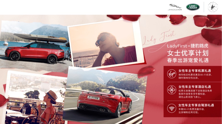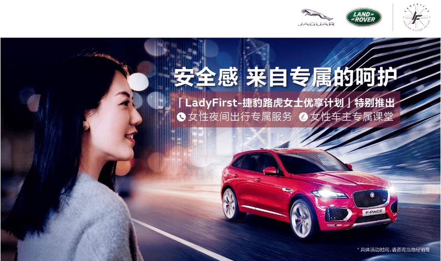 “LadyFirst-捷豹路虎女士优享计划”自今年3月正式推出以来,已为女性消费者带来诸多定制化的专属服务和礼遇活动。4月,捷豹路虎以春季出游宠爱礼遇为主题,为女性车主带来一系列机票、酒店、自驾游专属礼遇。5月,捷豹路虎则以母亲节为契机,为广大女性消费者带来专属购车礼遇,及专属家庭出行与安全礼遇。伴随着“女性专属道路救援及礼宾服务”与“女性车主专属课堂”的推出,“LadyFirst-捷豹路虎女士优享计划”将持续不断地为广大女性消费者带来关爱备至的尊享服务体验。捷豹路虎正脚踏实地贯彻“客户至上”的企业核心经营理念,并将“女士优先”的英伦文化植入到购车用车的全体验环节中,进一步精进服务品质,令女性车主及家人尽享捷豹和路虎品牌带来的贴心服务保障和丰富多彩的用车生活。