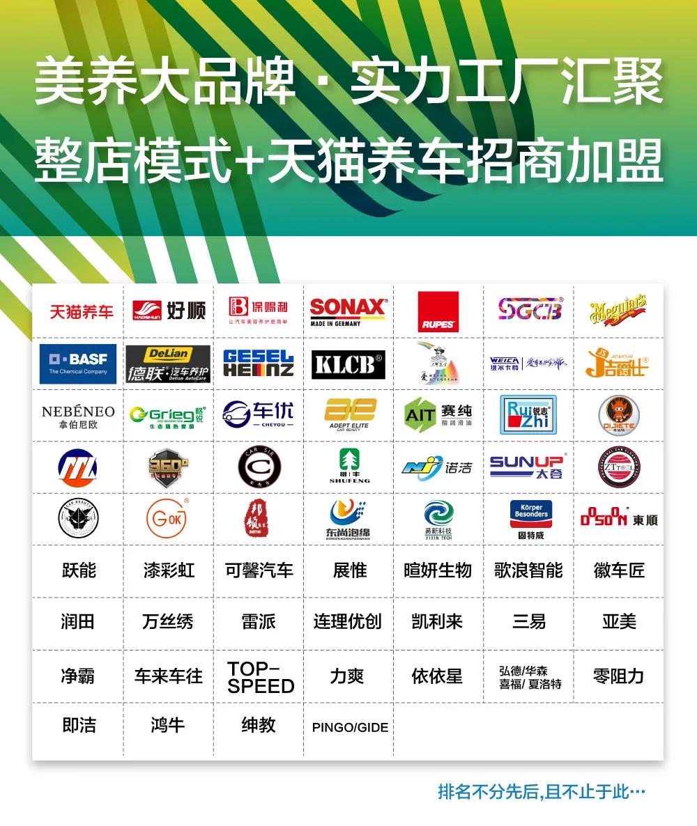 美容养护项目的价值也越来越被消费者重视,逐渐成为门店核心盈利项目。所以产品的品质和服务就是门店的活招牌,在这方便中贸雅森广州展不仅提供了客户认可度高的国内外大品牌、标准化的一站式整店输出模式、销量好品类丰富的大工厂,还引入了今年加盟店增长最快的天猫养车,以招募洗美养、维修、快修快保等服务能力强的门店加入为主,还准备了独家的招商优惠政策,先到先得。