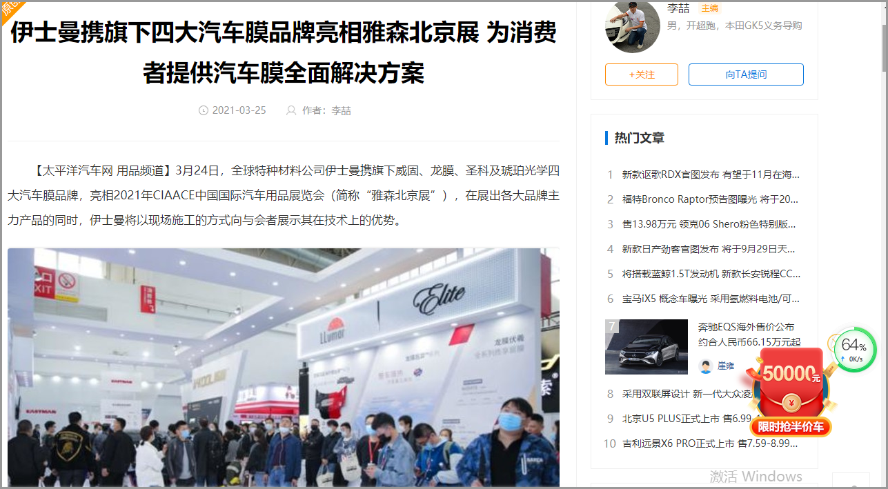 同时,随着市场前景被看好,竞争强度也在快速升高,尤其是膜工厂加入市场竞争。从定展企业来看,浙江世窗(396㎡)、航天云膜(312㎡)、酷德(306㎡)、中威车饰(260㎡)、纳科达(242㎡)、固驰(198㎡)、浙江紫光(180㎡)、康得新(180㎡)、山由帝杉(180㎡)、上海纳尔(180㎡)等一大批膜企强力加码杀入市场。2022年,漆面保护膜市场“北京展保卫战”一触即发。