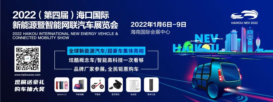 作为2022年开年全球汽车行业的首个国际车展,2022(第四届)海口国际新能源暨智能网联汽车展览会(以下简称:海口新能源暨智能网联车展),将于2022年1月6日至9日在海南国际会展中心隆重举行。