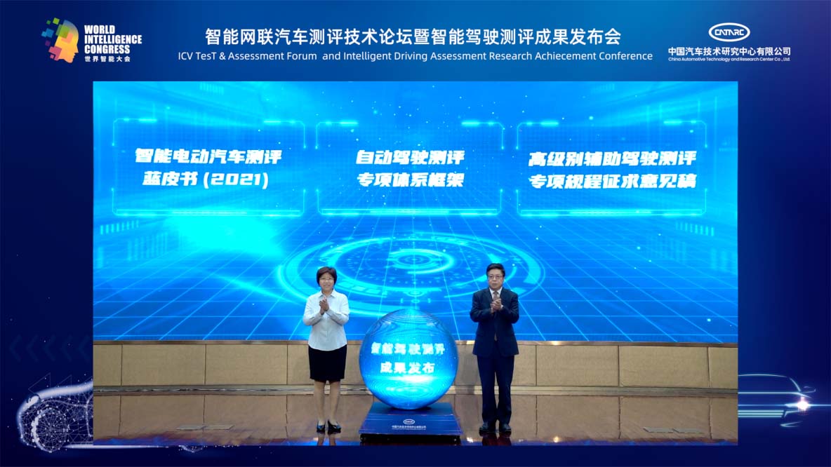 【中国汽车趋势网 6月16日讯】为进一步推动中国智能网联汽车产业稳步发展,加强社会各界沟通交流,由中国汽车技术研究中心有限公司(以下简称:中汽中心)主办的“智能网联汽车测评技术论坛暨智能驾驶测评成果发布会”于6月16日在云端举行,本次会议也是世界智能大会系列活动之一。会上,中汽中心发布了《智能电动汽车测评蓝皮书(2021)》《高级别辅助驾驶测评专项规程(征求意见稿)》以及“自动驾驶测评专项体系框架”等多项智能驾驶测评成果。