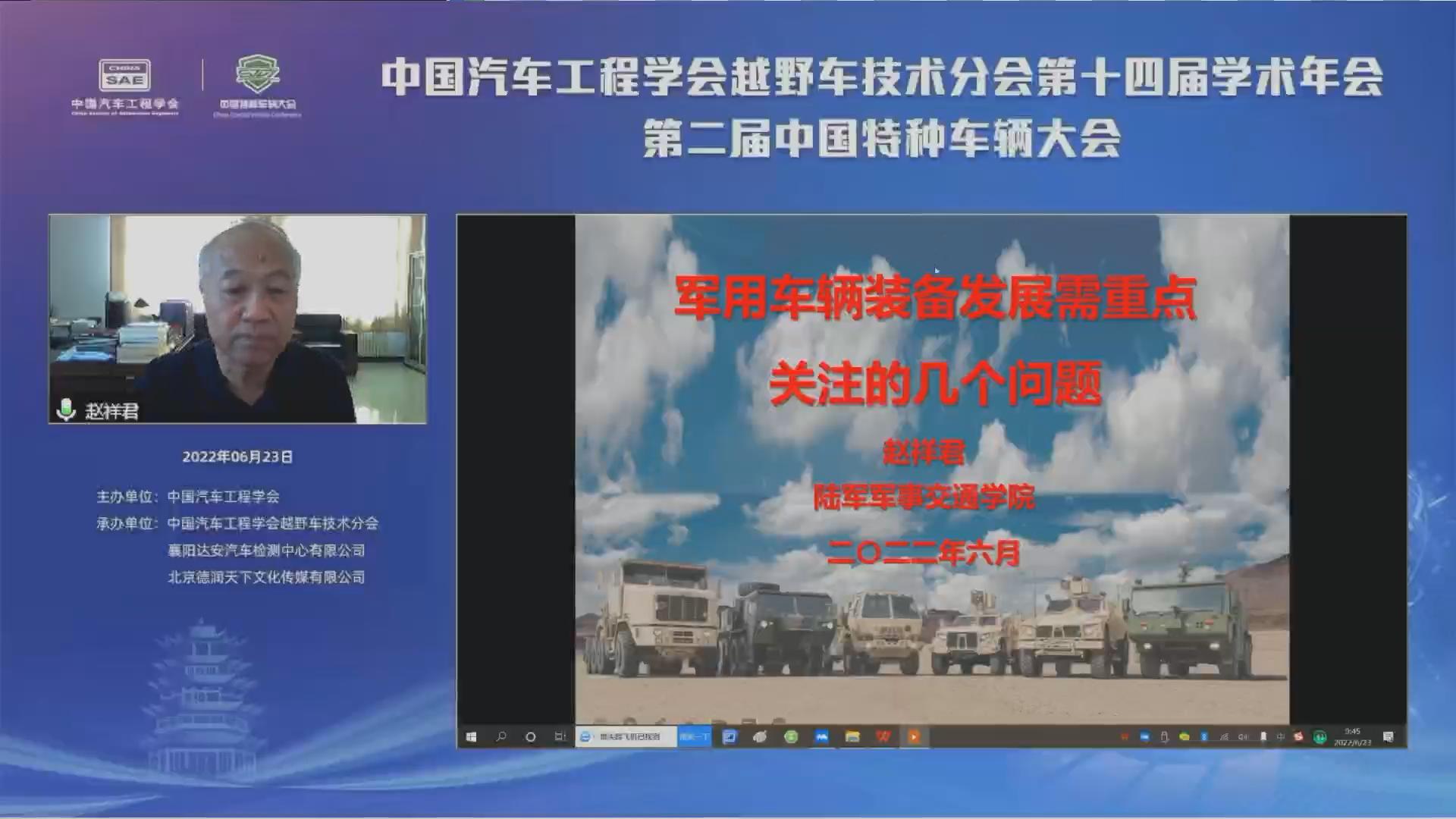 【中国汽车趋势网 讯】2022年6月23日,2021年中国汽车工程学会越野车技术分会第十四届学术年会第二届中国特种车辆大会在线上成功召开。本次会议围绕下一代车辆技术需求与特征进行交流研讨,吸引了来自全国越野车行业军方用户、科研院校、生产制造、关键零部件配套以及相关企业的领导、专家学者共400多人共聚云端,为我国越野车未来发展趋势和技术创新应用献言献计!