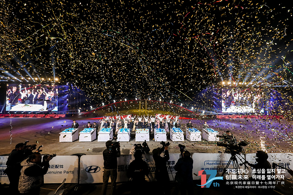 共同切下生日蛋糕,为北京现代十七周年庆生