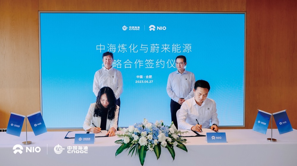 【中国汽车趋势网讯】6月27日,蔚来能源与中海石油炼化有限责任公司(以下简称中海炼化)在江淮蔚来合肥先进制造基地正式签署战略合作协议,将围绕充换电网络布局开展深度合作。中海炼化董事长、总经理、党委书记王维民,蔚来联合创始人、总裁秦力洪等双方领导现场见证,中海炼化副总经理陈彦、蔚来高级副总裁沈斐签署战略合作框架协议。