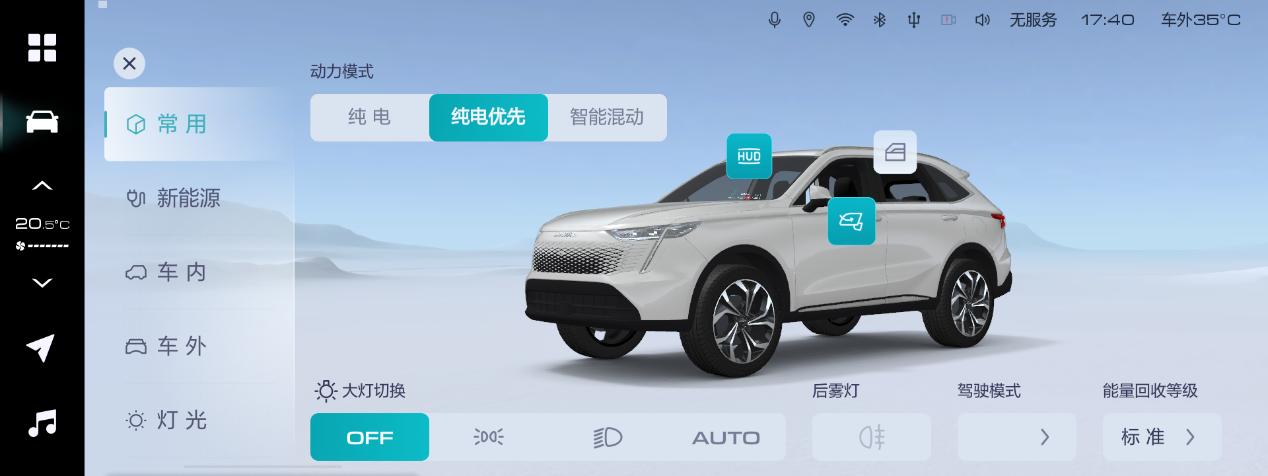 与此同时,更新完后将能量管理融入到车控车设,将能量流通过3D动画的形式展示,这样可以清晰的看到不同状态下能量流的变化,以及不通路况能量回收的快慢,能够简单明了的感知到哈弗枭龙MAX的省电逻辑。