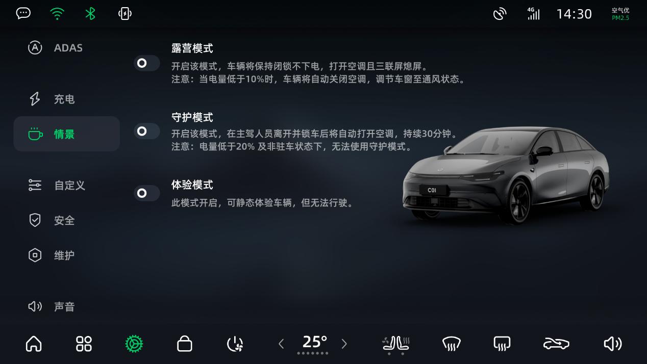 除了智能驾驶辅助,本次OTA升级还为舒享版车型带来了广受好评的“露营模式”,一键满足露营场景需求,智能科技让自然之旅更惊艳。此外,还有按键提示音、雷石KTV人声延迟、云听广播播放流畅度、能耗等方面的优化升级。