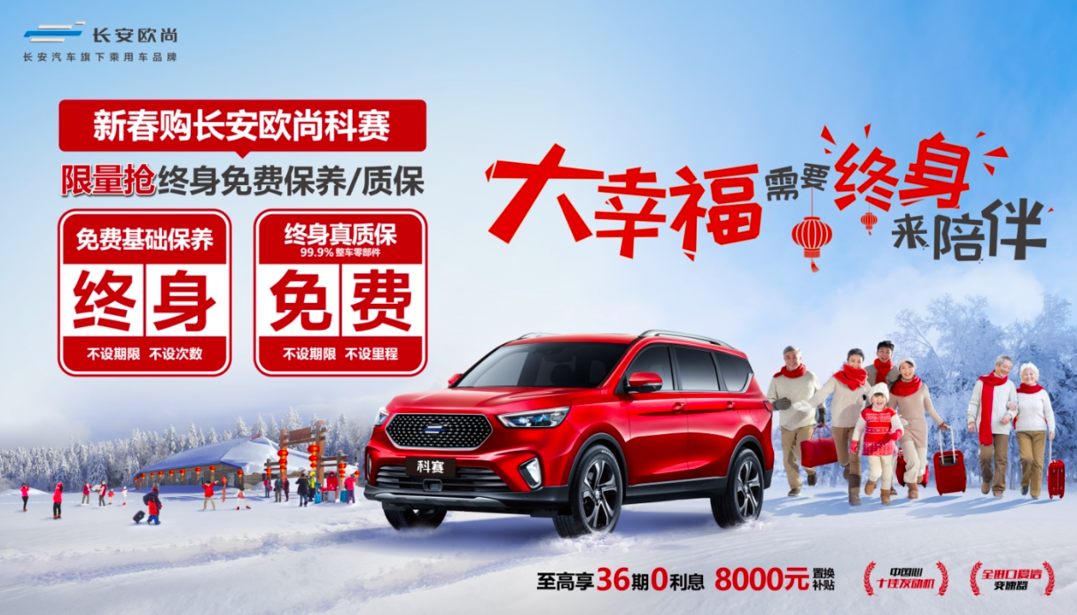 最近,长安欧尚推出“新春购长安欧尚科赛 限量抢终身免费基础保养/保修”购车优惠政策——2020年1月1日至2020年1月31日在欧尚Style下订科赛、科赛GT的前3000名用户即可享受“终身免费基础保养+终身免费真质保”,给用户带去每年带去至少价值2000元的实实在在的真福利。