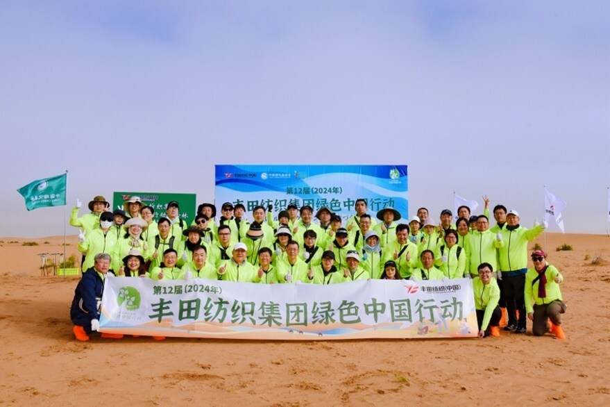 2024年9月21日,丰田纺织集团携手中国绿化基金会,在位于内蒙古阿拉善左旗的中国绿化基金会腾格里沙漠锁边公益项目基地,举办了第12届丰田纺织集团绿色中国防治荒漠化公益植树活动。这不仅标志着丰田纺织在环境保护道路上的又一坚实步伐,也是对全球生态文明建设承诺的生动实践,宣告了丰田纺织在绿色可持续发展领域的坚定立场与不懈追求。