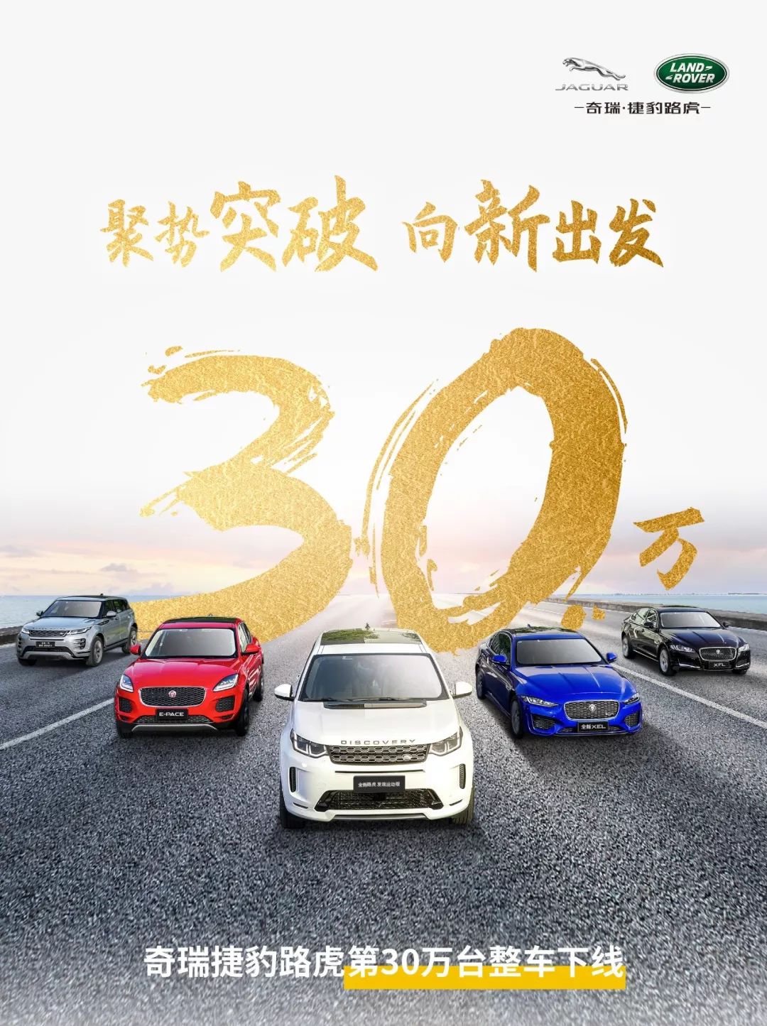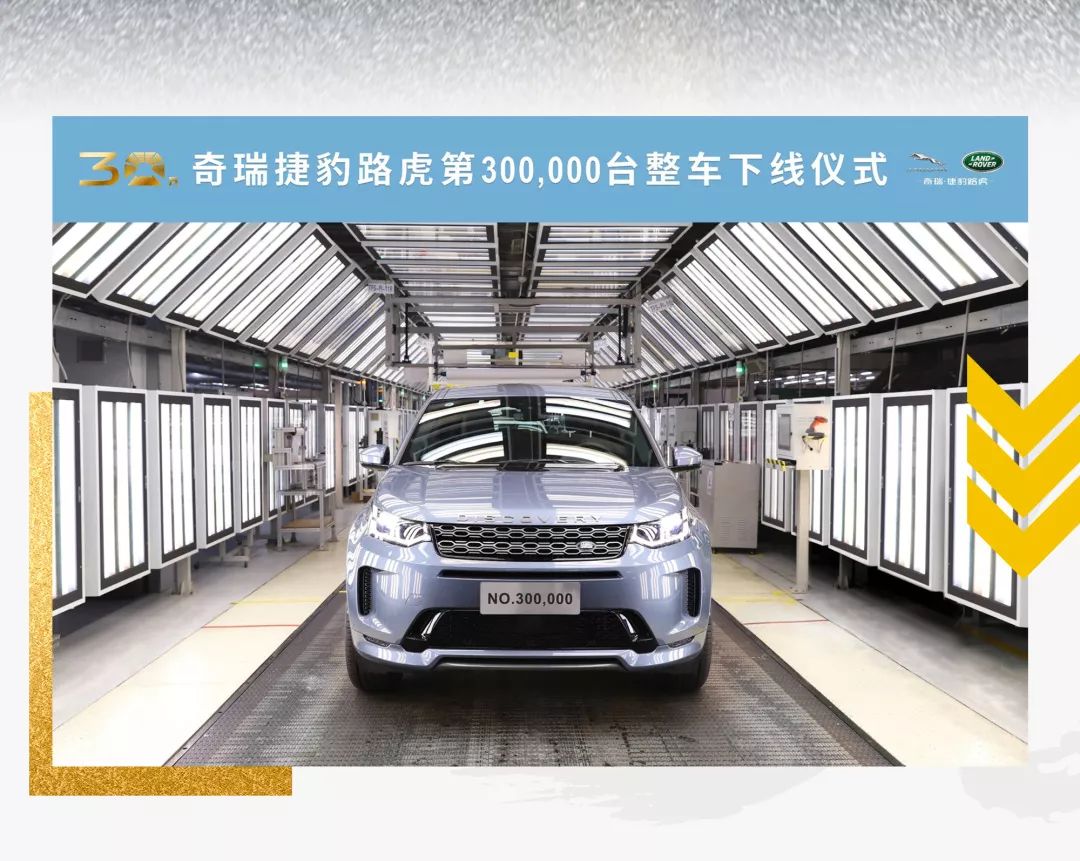 伴随着全新路虎发现运动版驶下生产线,奇瑞捷豹路虎汽车有限公司(奇瑞捷豹路虎)正式完成第300,000台整车的生产制造。