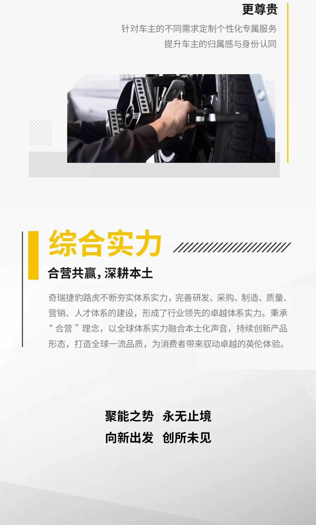 奇瑞捷豹路虎总裁戴慕瑞(Murray Dietsch)先生表示:“第300,000台整车下线,是奇瑞捷豹路虎持续推进‘智能+’战略,倾听中国声音、深耕本土化进程的重要阶段性成果;也是企业综合体系实力的又一次完美展现,标志着奇瑞捷豹路虎迈入了全新发展阶段。”